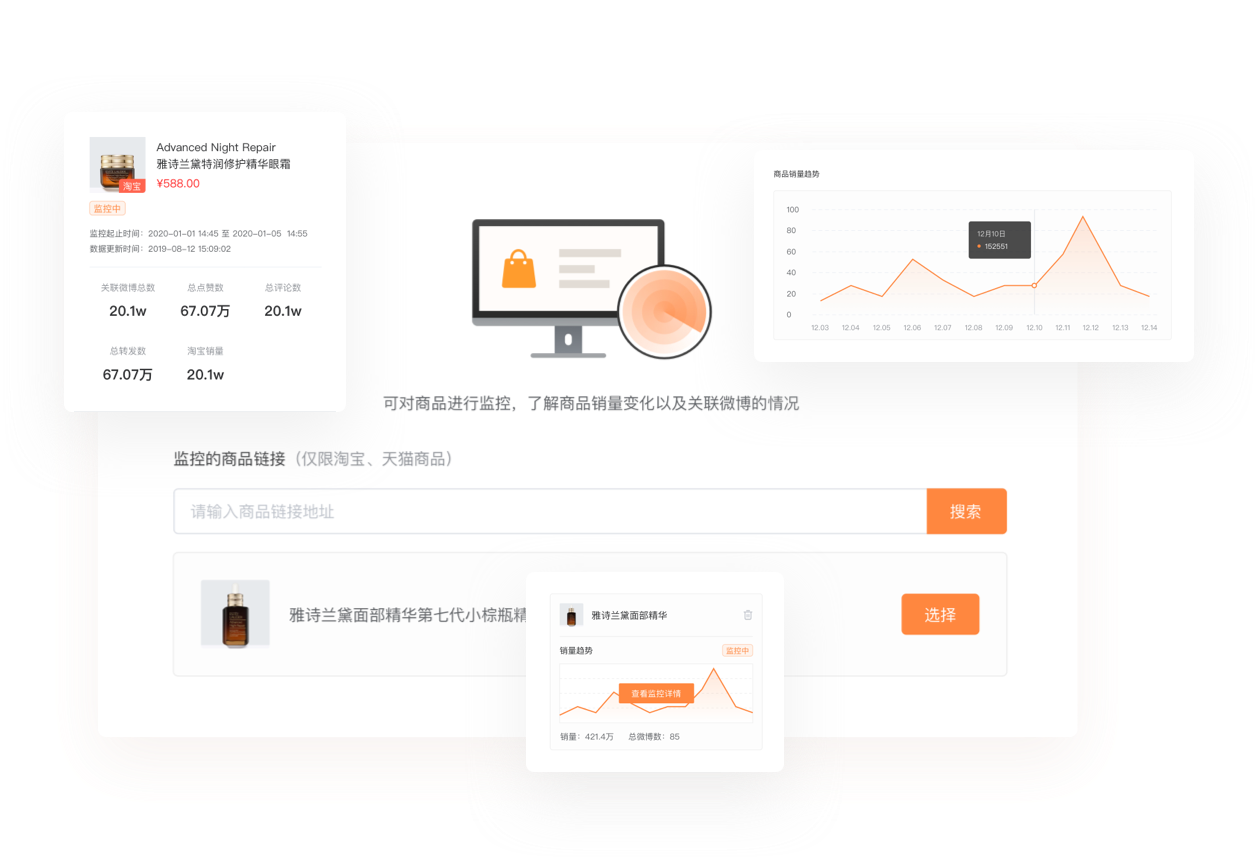 了解商品銷量變化以及關聯微博的情況